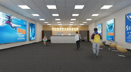 內(nèi)江市體育中心恒溫游泳館占地面積12000平方米,有固定座椅1000個(gè),為乙級(jí)比賽型場(chǎng)館,可承辦省級(jí)及以上規(guī)格游泳競(jìng)速、跳水、花樣游泳等比賽。